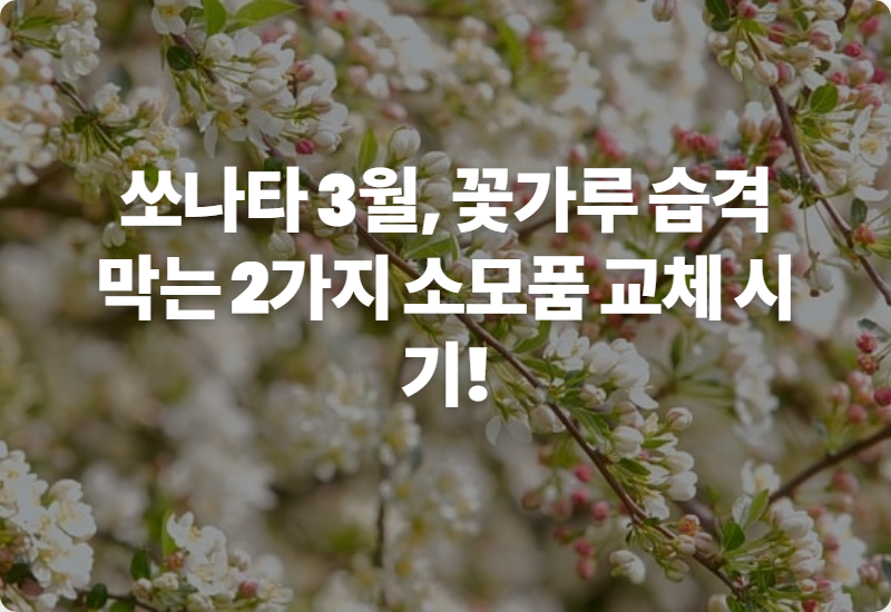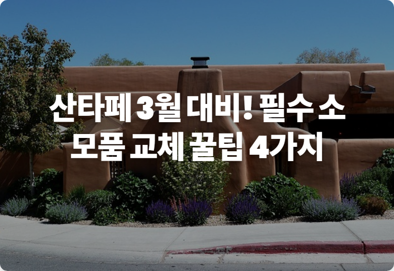 여러분, 안녕하세요. 봄바람이 살랑이는 3월입니다.산타페의 3월은 참 아름답지만, 동시에 도전적인 시기이기도 하죠?바로 지긋지긋한 꽃가루 때문입니다.차가운 겨울이 지나고 따뜻한 기운이 돌기 시작하면, 나무들은 일제히 생명의 기지개를 켜는데요.이때 공기 중으로 엄청난 양의 꽃가루를 뿜어냅니다.우리 차에게도 예외는 아니죠.특히 산타페 지역의 3월은 주니퍼, 삼나무, 느릅나무 등 다양한 수목의 꽃가루가 절정을 이룹니다.이런 꽃가루는 운전자와 탑승객의 건강을 위협할 뿐만 아니라, 차량의 시야 확보에도 큰 영향을 미칩니다.그래서 오늘은 산타페의 3월 꽃가루 시즌을 현명하게 대비하기 위한 필수 소모품인 에어컨 필터와 와이퍼 교체 꿀팁 4가지를 소개해 드리려고 합니다.미리미리 점검하고 교체해서 쾌적하고 안전한 드라이..