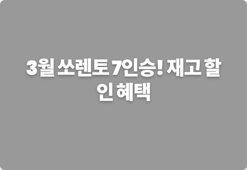 새 학기가 시작되는 3월, 가족을 위한 SUV 구매를 고민하고 계신가요?특히 넉넉한 공간의 7인승 쏘렌토를 눈여겨보고 있다면, 지금이 절호의 기회일지도 모릅니다.이번 달 쏘렌토 7인승 모델에 적용되는 놀라운 재고 할인과 신학기 맞이 특별 구매 혜택들을 자세히 알아보고, 여러분의 현명한 선택을 도와드릴게요.과연 어떤 꿀팁과 정보들이 기다리고 있을까요?온 가족을 위한 쏘렌토 7인승의 매력쏘렌토 7인승은 넓은 실내 공간과 뛰어난 활용성으로 많은 가족에게 사랑받는 모델입니다.자녀가 있는 집이라면 주말 나들이나 장거리 여행 시 짐과 탑승자 모두 편안하게 이동할 수 있죠.저도 얼마 전 친구네 가족과 함께 쏘렌토 7인승을 타고 캠핑을 다녀왔는데, 정말 여유로운 공간 덕분에 모두가 만족스러워했어요.특히 3열 좌석은 아..