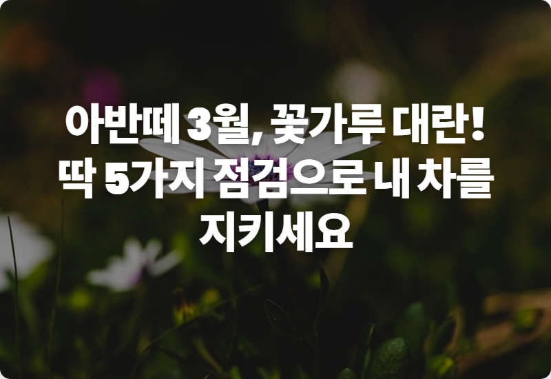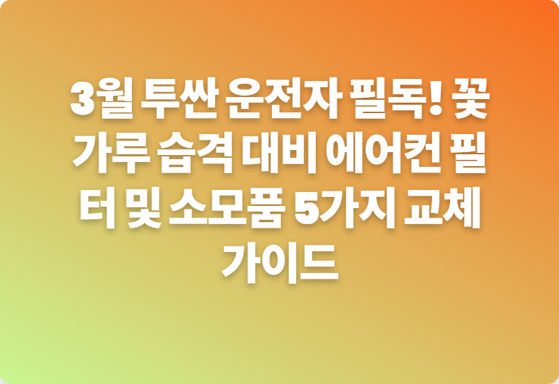 따뜻한 봄바람이 살랑거리는 3월입니다만, 운전자들에게는 마냥 반갑지만은 않은 소식이 있죠?바로 매년 찾아오는 '꽃가루 습격' 말이에요!특히 소중한 나의 캐스퍼 경차에 꽃가루가 한바탕 덮칠 것을 생각하면 벌써부터 재채기가 나오는 것 같지 않나요?오늘은 이 얄미운 꽃가루와 황사, 미세먼지로부터 우리 캐스퍼를 지키고, 쾌적하고 안전한 운전을 위한 3월 필수 소모품 교체 리스트를 꼼꼼하게 총정리 해보겠습니다.자, 지금부터 제가 알려드리는 팁들을 잘 기억하고 쾌적한 봄 드라이브를 준비해 보자고요!숨통 트이는 에어컨 필터혹시 차 안에서 갑자기 재채기가 나오거나, 꿉꿉한 냄새가 난 적 있으신가요?그렇다면 캐스퍼의 에어컨 필터, 즉 캐빈 에어 필터 교체 시기가 왔다는 신호일 수 있습니다.봄철 꽃가루와 황사, 미세먼지는..