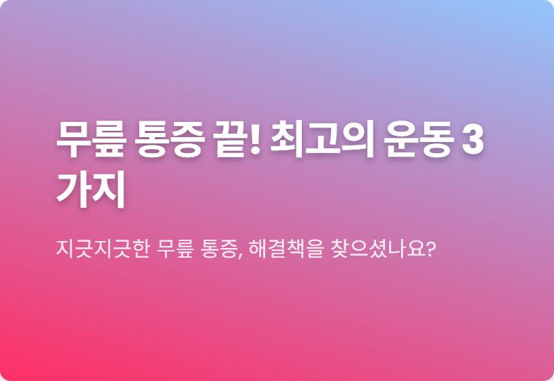 무려 30년간의 연구를 종합 분석한 결과이니, 믿을 만하겠죠? 여러분의 무릎 건강을 되찾아 줄 최고의 운동법, 지금 바로 공개합니다!