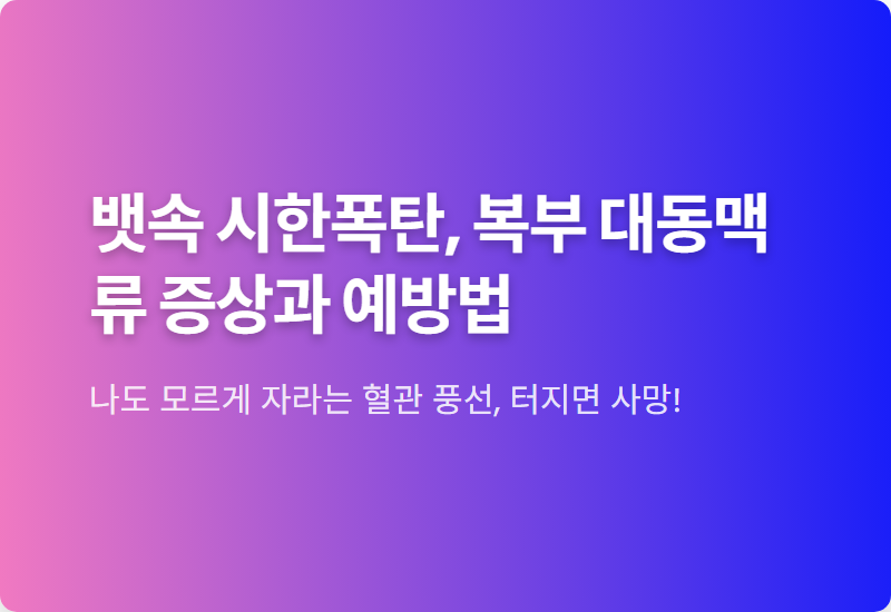 파열 시 생존을 장담하기 어려운 무서운 질환, 복부 대동맥류에 대해 알아보고 소중한 생명을 지키는 방법을 알려드릴게요.