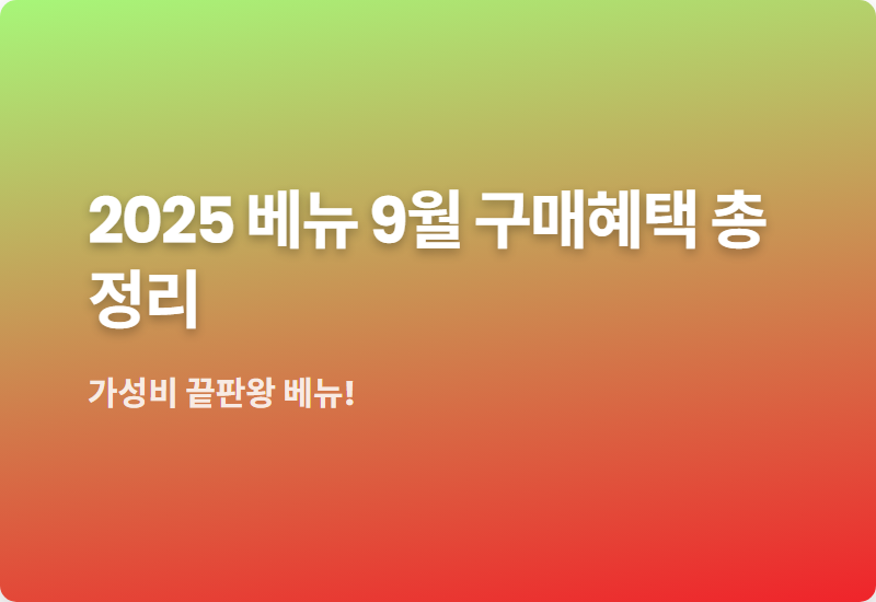 2025년 9월 베뉴 구매 혜택은 기본 할인과 특별 프로모션, 그리고 저금리 할부까지 삼박자가 잘 어우러진 달인 것 같습니다.