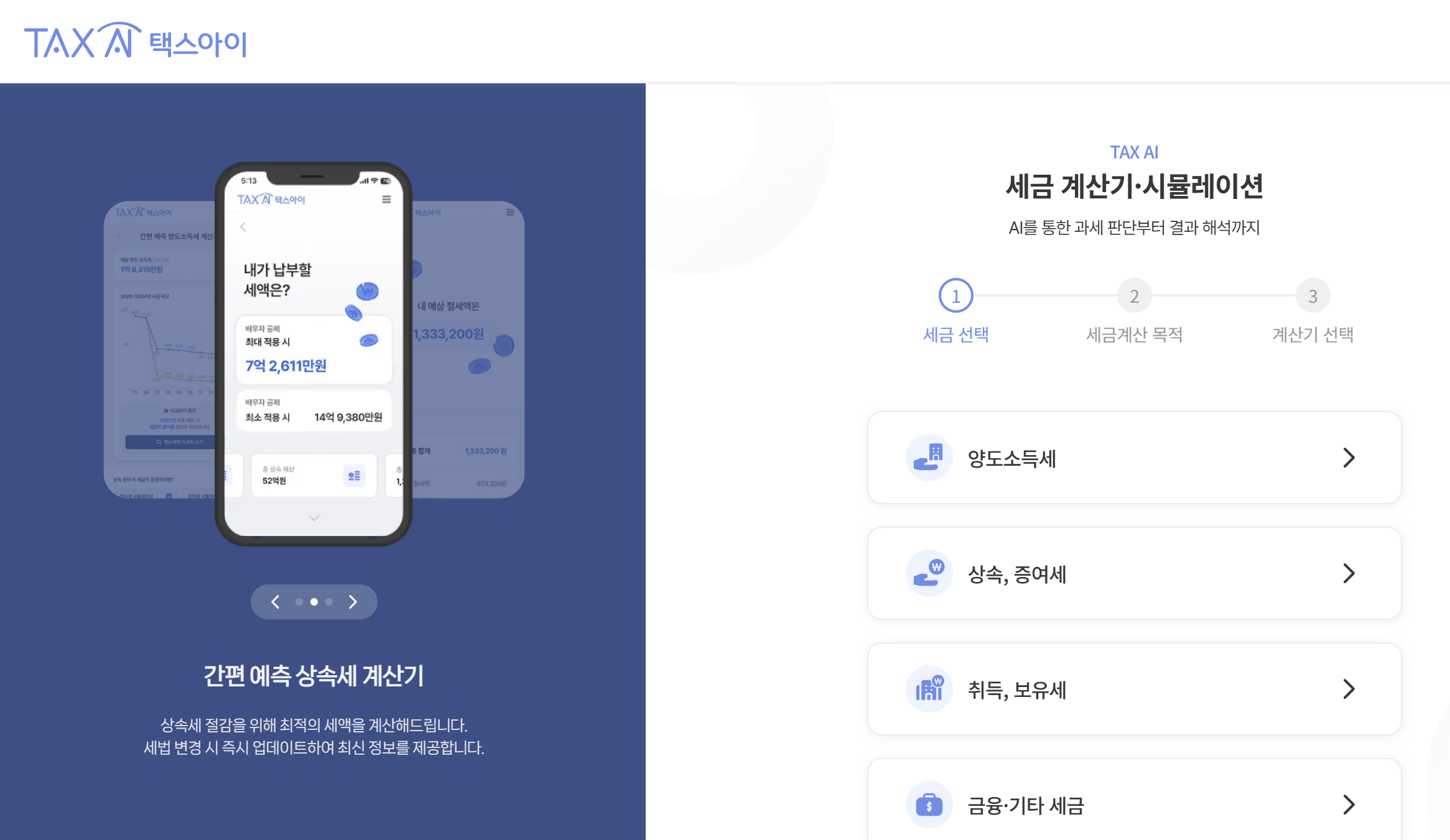 어려운 세법 용어나 복잡한 계산 과정 없이, 몇 가지 정보만 입력하면 AI가 알아서 예상 세금을 착착 계산해 주니 정말 편리하겠죠?