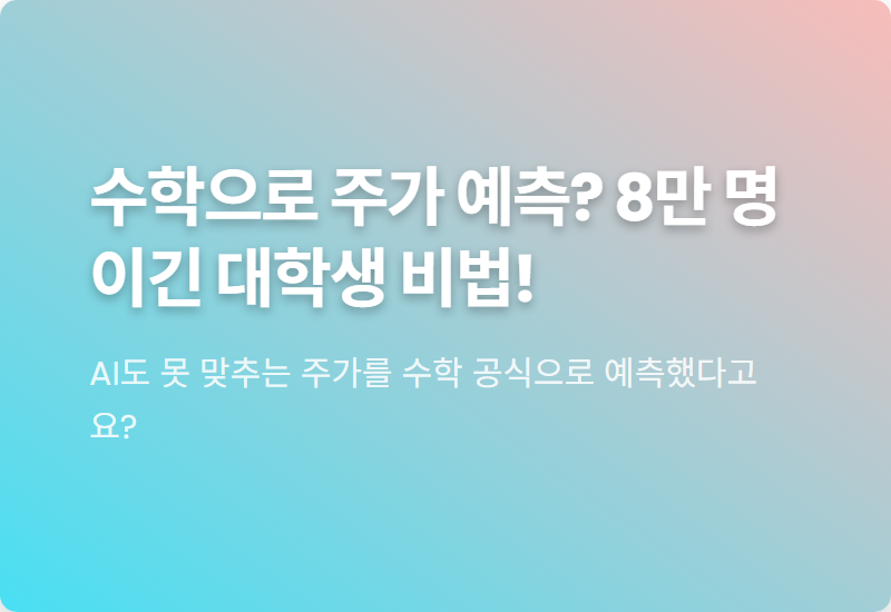 무려 142개국 8만 명이 참가한 세계 퀀트 투자 대회에서 한국 대학생이 우승을 차지했다는 놀라운 소식, 들으셨나요?