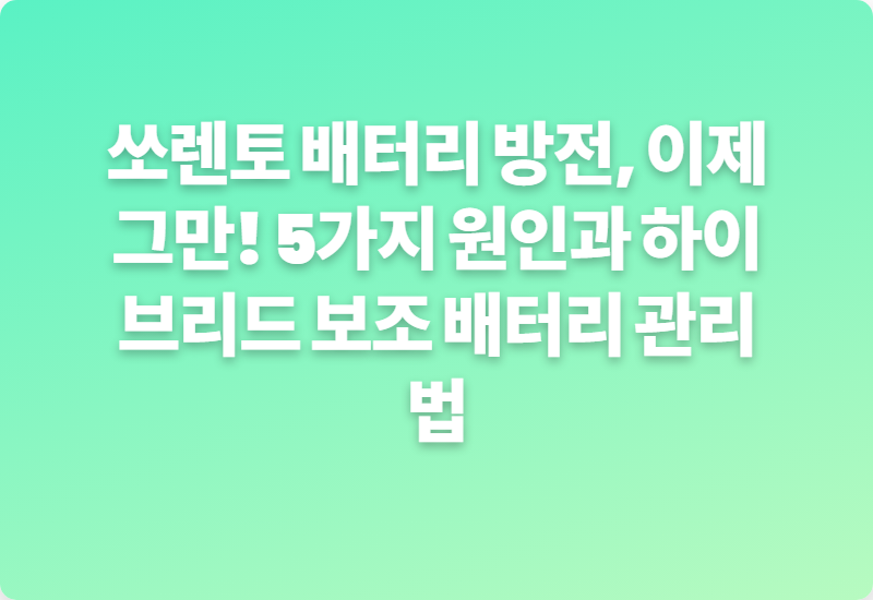 오늘은 쏘렌토 오너분들이 가장 많이 겪는 배터리 방전의 숨겨진 원인 5가지와 더불어, 하이브리드 차량을 위한 보조 배터리 관리 꿀팁까지 시원하게 파헤쳐 보겠습니다.