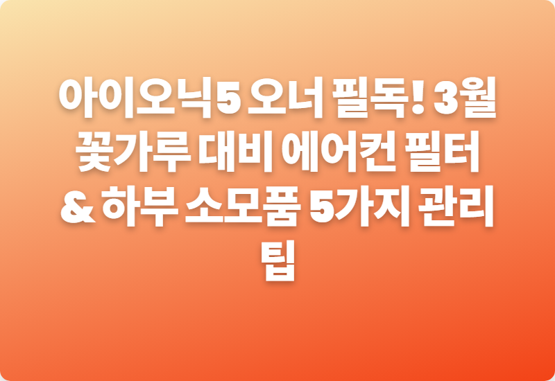 오늘은 다가오는 꽃가루 시즌을 현명하게 대비하고, 안전한 주행을 위한 아이오닉5의 핵심 소모품 관리법에 대해 쉽고 재미있게 알려드릴게요.