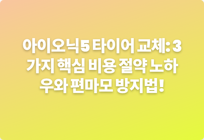 궁금하시죠? 아이오닉5의 묵직한 무게를 든든히 지탱해 줄 전용 타이어는 무엇인지, 왜 이렇게 중요한지, 그리고 비싼 타이어 교체 비용과 고질적인 편마모를 어떻게 관리해야 할지 말이죠.