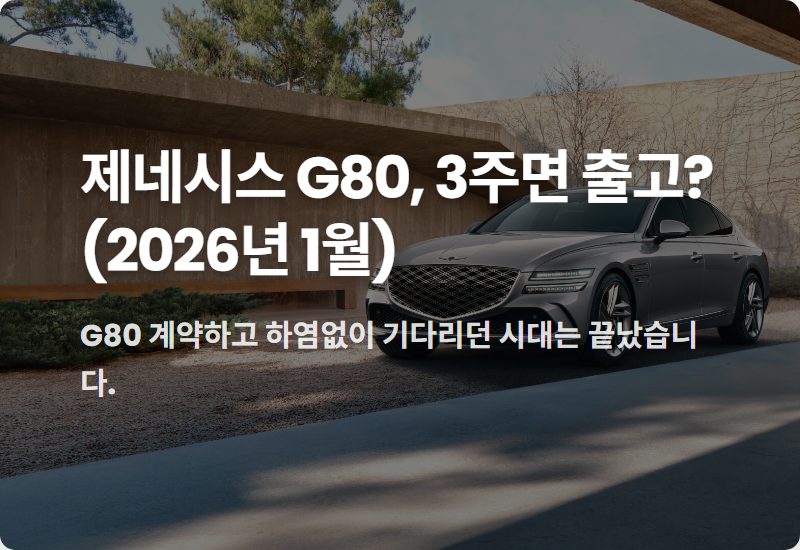 정리하자면, 2026년 1월 현재 제네시스 G80은 역대급으로 짧은 출고 대기 기간을 자랑하고 있습니다.