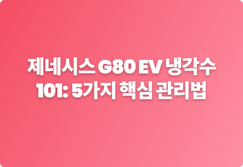 🆀 제네시스 G80 EV 냉각수는 일반 부동액과 무엇이 다른가요?