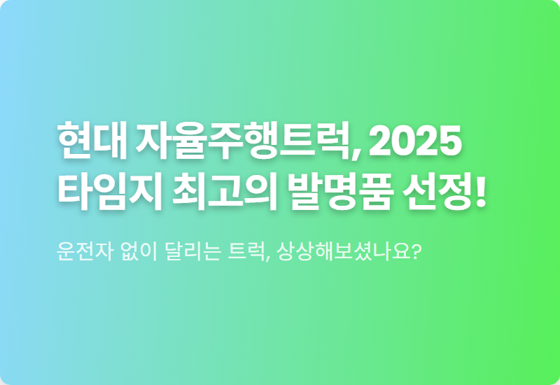 현대자동차의 수소연료전지 자율주행 트럭 '엑시언트'가 미국 타임(TIME)지가 선정한 '2025년 최고의 발명품'으로 뽑혔다는 놀라운 소식입니다!