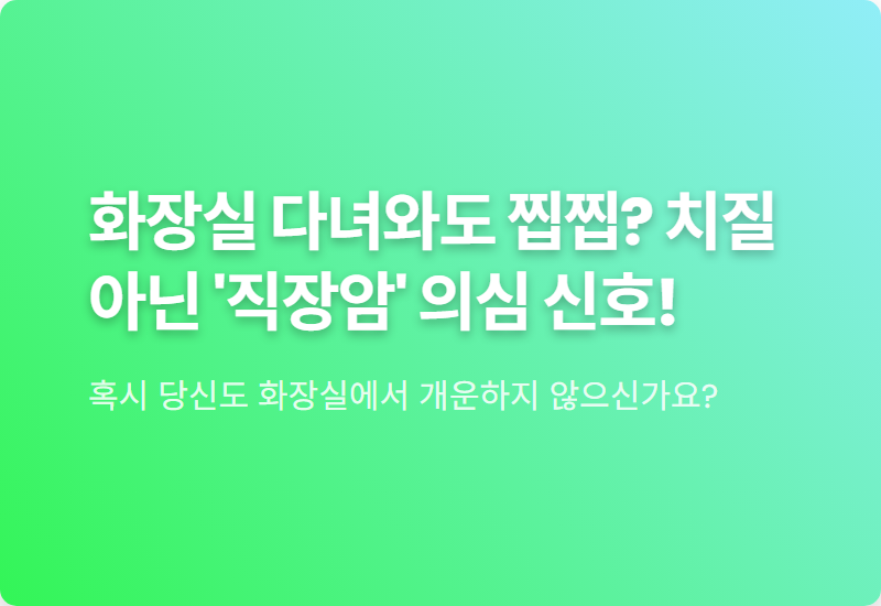 하지만 이게 치질이 아니라 우리 몸이 보내는 위험한 신호, '직장암'일 수 있다는 사실, 알고 계셨나요?