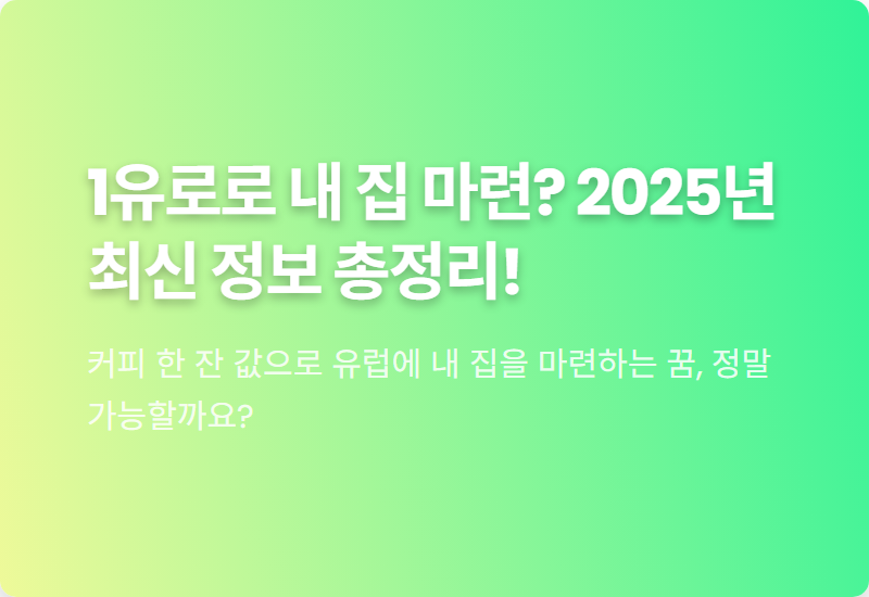 '1유로 주택' 프로젝트는 단순한 부동산 거래가 아니라, 새로운 삶의 터전을 만들고 지역 사회에 기여할 기회입니다.