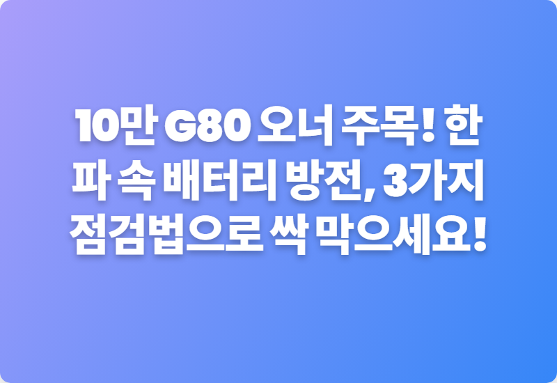오늘은 추운 날씨에도 내 G80이 쌩쌩하게 달려줄 수 있도록, 배터리 충전 상태를 점검하고 방전을 똑똑하게 예방하는 실질적인 꿀팁들을 쉽고 재미있게 알려드릴게요.