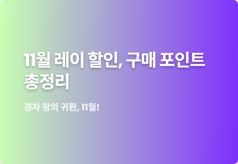 마침 '경차의 왕'이라 불리는 기아 레이가 11월을 맞아 역대급 할인 혜택을 들고 찾아왔다고 합니다.