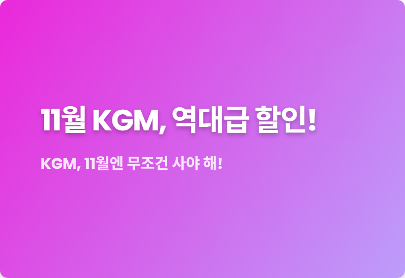 찬 바람 불기 시작하는 11월, KGM이 정말 역대급 프로모션으로 우리 곁을 찾아왔습니다.