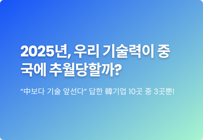 최근 대한상공회의소 조사 결과는 우리에게 큰 충격을 안겨주었는데요, 한국 기업 10곳 중 단 3곳만이 중국보다 기술력이 앞선다고 답했다는 사실, 믿어지시나요?