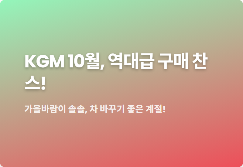 10월의 청명한 가을 하늘 아래, KGM이 역대급 할인 혜택으로 우리를 찾아왔습니다.