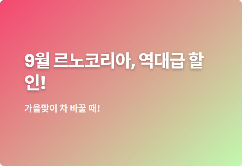 마침 르노코리아에서 2025년 9월을 맞아 역대급 할인 프로모션을 진행한다고 해서 제가 꼼꼼하게 알아봤습니다!.