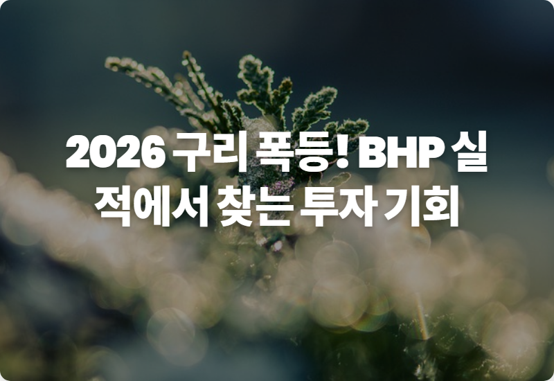 오늘은 2026년 상반기 역대급 실적을 기록한 BHP의 소식과 함께 우리 생활과 밀접한 구리 시장의 변화를 아주 쉽고 재미있게 알려드리려고 해요.