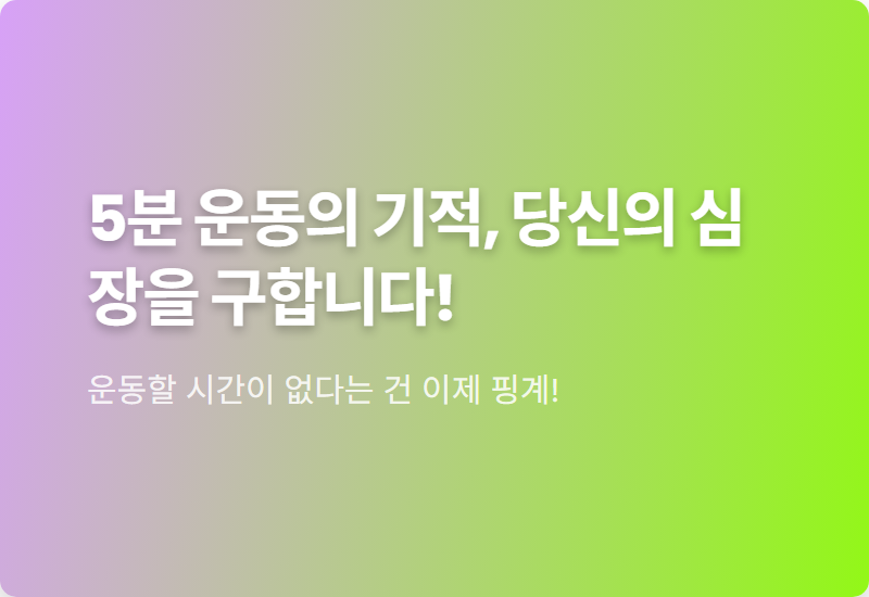 단 5분, 아니 그보다 짧은 시간의 운동만으로도 건강을 되찾을 수 있다는 놀라운 소식이 있습니다.