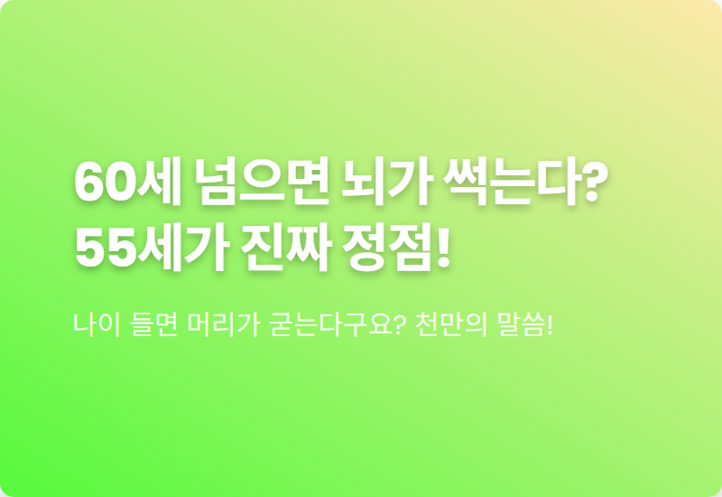 물론, 나이가 들면서도 건강하고 총명한 뇌를 유지하기 위한 노력은 반드시 필요합니다.