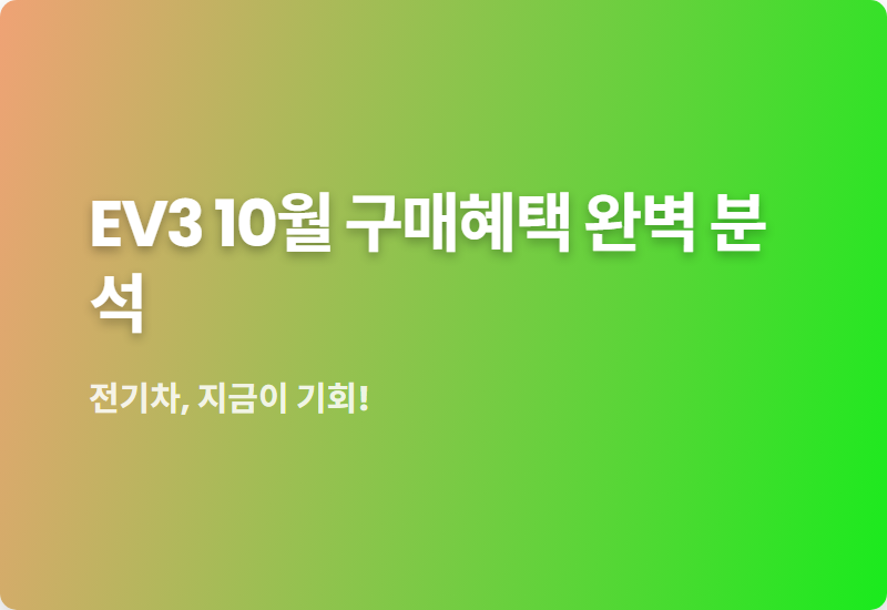 특히 기아 EV3에 대한 관심이 뜨거운데요, 10월 구매 혜택이 역대급이라고 해서 제가 직접 알아봤습니다!.