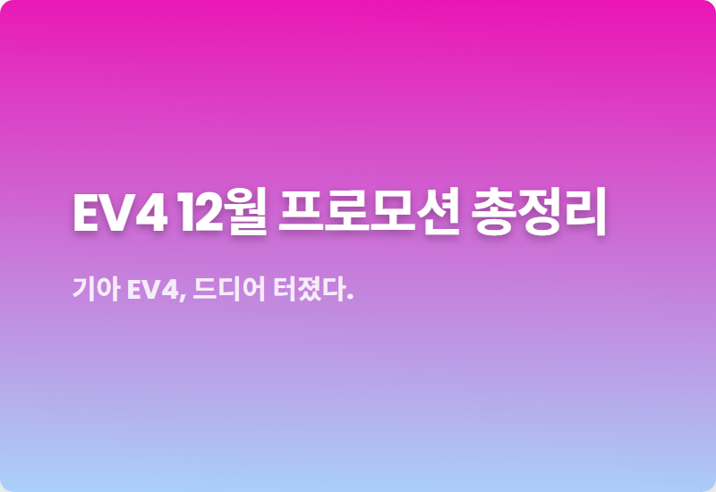 오늘은 EV4의 12월 프로모션 혜택과 실구매가 정보를 꼼꼼하게 파헤쳐 보겠습니다.