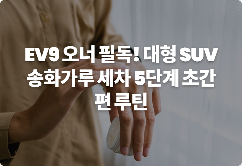 EV9 대형 SUV 세차, 처음에는 엄두가 안 나겠지만, 오늘 소개해드린 5단계 초간편 루틴을 따라 하면 생각보다 어렵지 않게 해낼 수 있을 겁니다. 중요한 것은 송화가루와 꽃가루를 방치하지 않고 적절한 도구와 방법을 사용하는 것입니다.