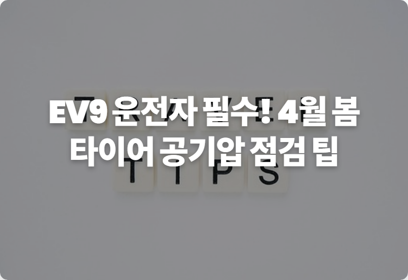 오늘 알려드린 EV9의 봄철 타이어 공기압 점검 팁과 안전 수칙들을 꾸준히 실천하셔서, 늘 안전하고 쾌적한 주행 경험을 만드시길 바랍니다.