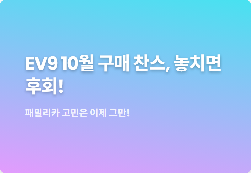 특히 10월에는 역대급 프로모션이 준비되어 있다고 하니, 패밀리카 구매를 망설이셨던 분들이라면 이번 기회를 꼭 잡으셔야 할 것 같습니다.