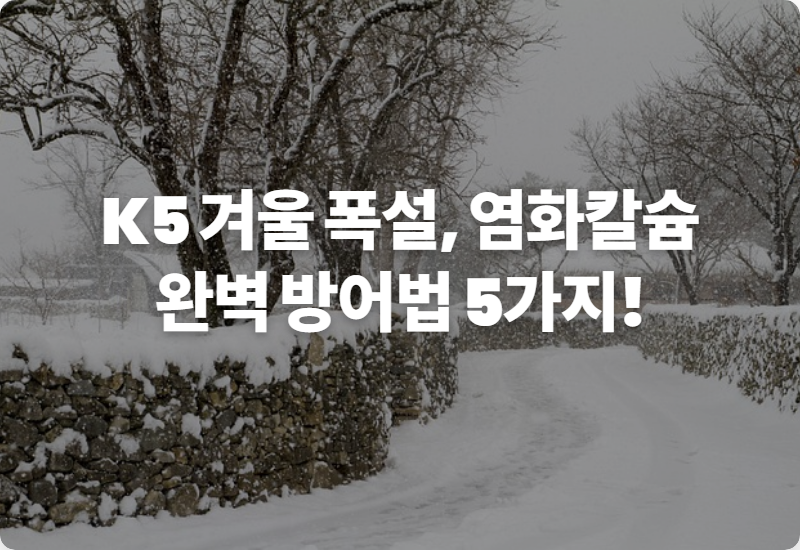 특히 제설 작업에 필수적인 염화칼슘은 우리 애마 K5에게는 치명적인 독이 될 수 있다는 사실, 알고 계셨나요?.