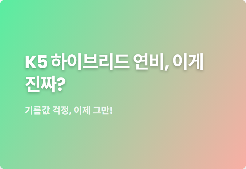 유지비 걱정 없이 멋진 차를 타고 싶다면, 주저 말고 K5 하이브리드를 경험해보세요.