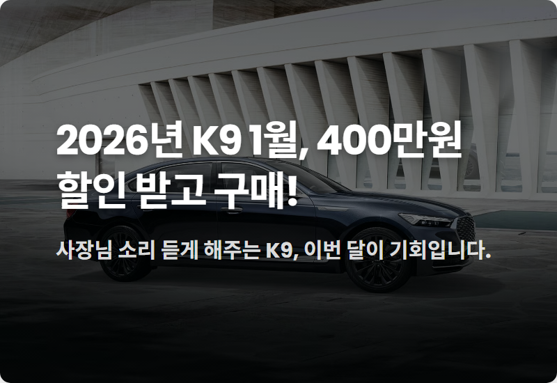 2026년 1월, K9 구매를 위한 역대급 혜택과 할인 프로모션 정보를 모두 모아왔습니다.